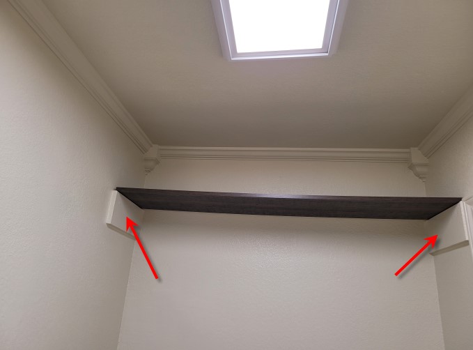 These blocks support a shelf and a clothes rod. They must be very sturdy so I used lots of nails and caulk: