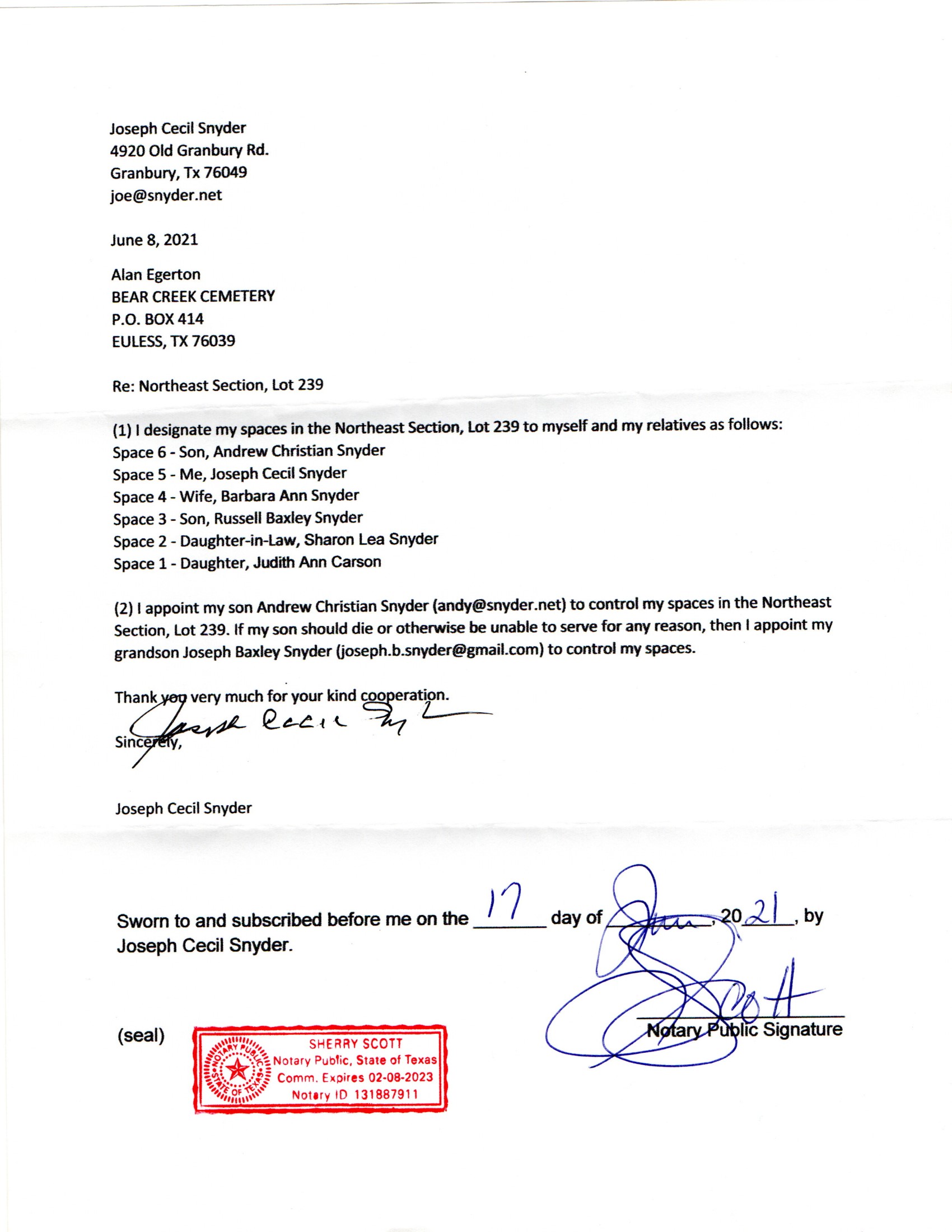 Bear Creek Cemetery document (here)
