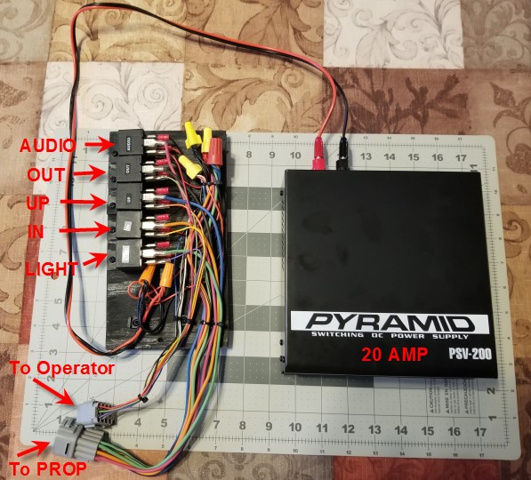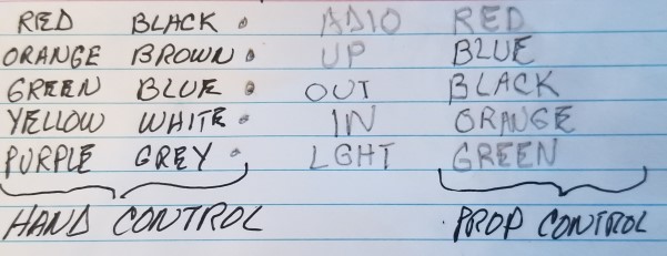 Prop side control (blue tape used before connector labels were applied)